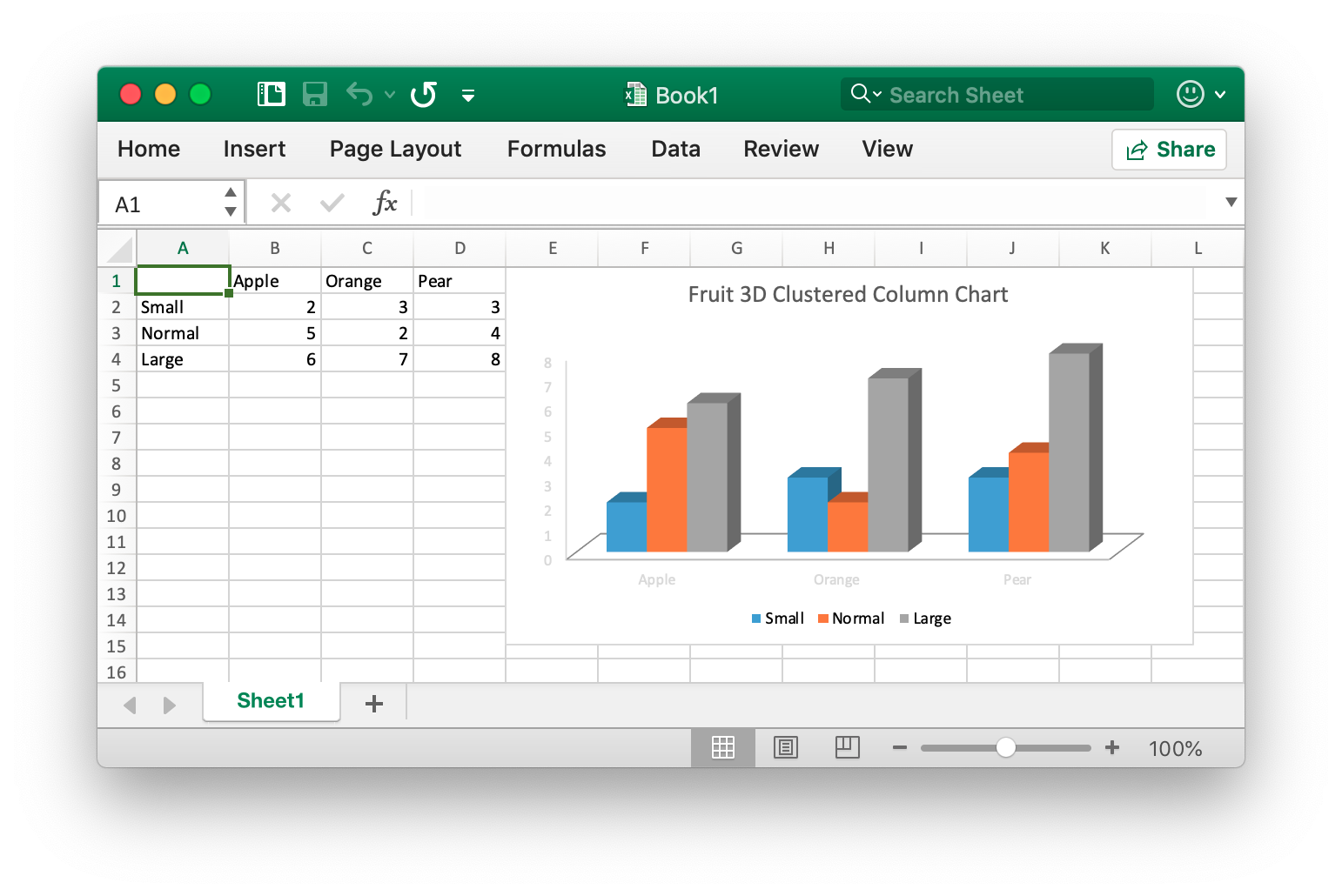 err := f.AddChart("Sheet1", "E1", `{"type":"col3DClustered","series":[{"name":"Sheet1!$A$2","categories":"Sheet1!$B$1:$D$1","values":"Sheet1!$B$2:$D$2"},{"name":"Sheet1!$A$3","categories":"Sheet1!$B$1:$D$1","values":"Sheet1!$B$3:$D$3"},{"name":"Sheet1!$A$4","categories":"Sheet1!$B$1:$D$1","values":"Sheet1!$B$4:$D$4"}],"title":{"name":"Fruit 3D Clustered Column Chart"}}`)